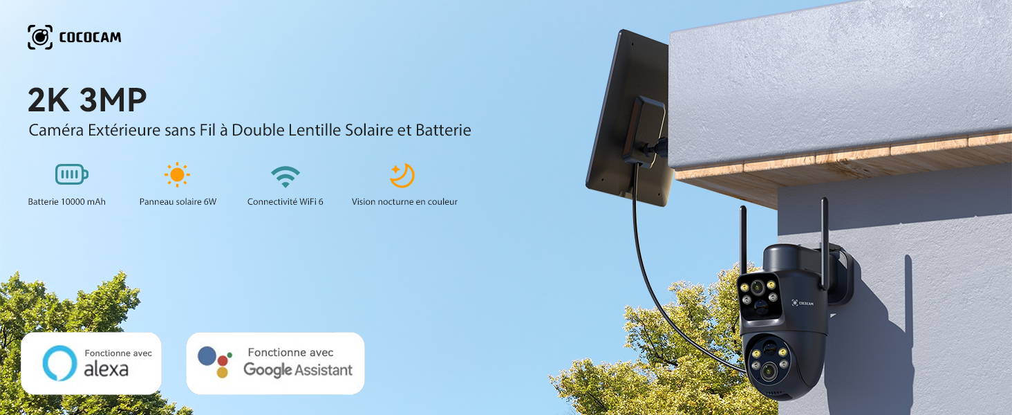 COCOCAM 2K Double Objectif Camera Exterieur Sans Fil Solaire