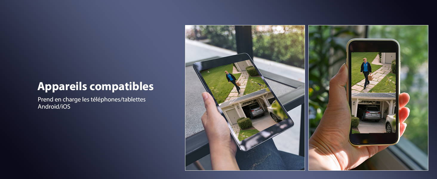 (1). Smartphone/tablette uniquement : Android et iOS (2). Fonctionne avec Alexa et Google Assistant (affichage à caméra unique uniquement)