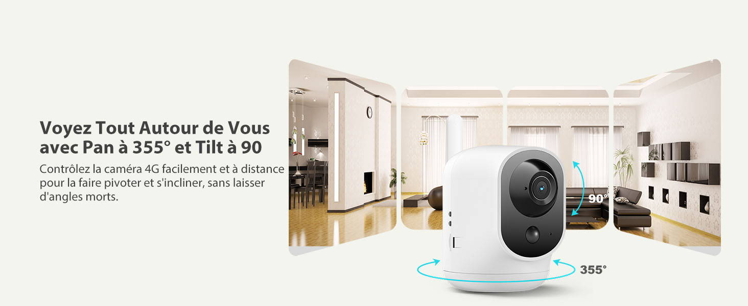 cette caméra d'intérieur 4G (Wi-Fi non pris en charge) assure une surveillance fiable et continue. Grâce à sa connectivité 4G uniquement, elle convient à tous les environnements. La caméra prend en charge une rotation horizontale de 355° et une rotation verticale de 90°, permettant une couverture complète de la pièce et une visualisation en temps réel sous tous les angles.