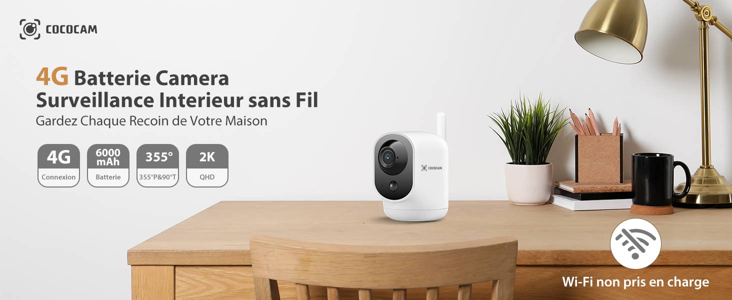 COCOCAM 4G Camera Surveillance Sans WiFi Interieur Sans Fil