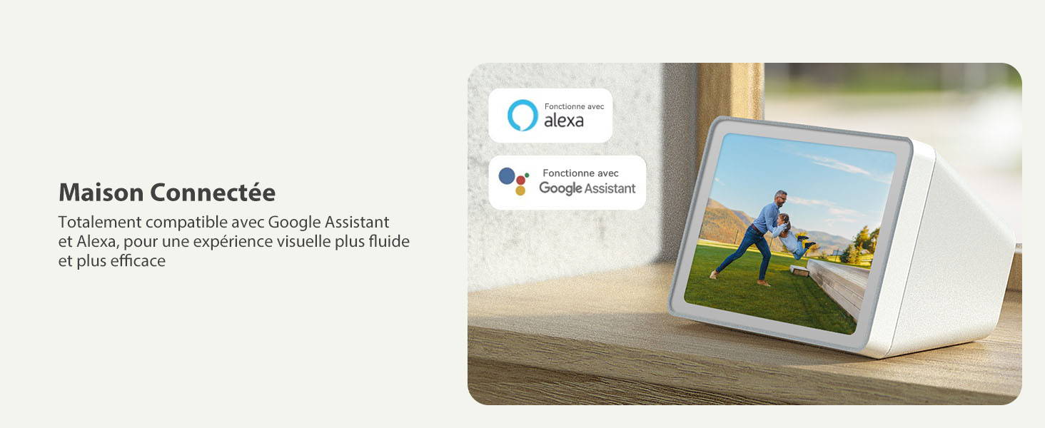 Compatible avec Alexa et fonctionne avec Google Assistant