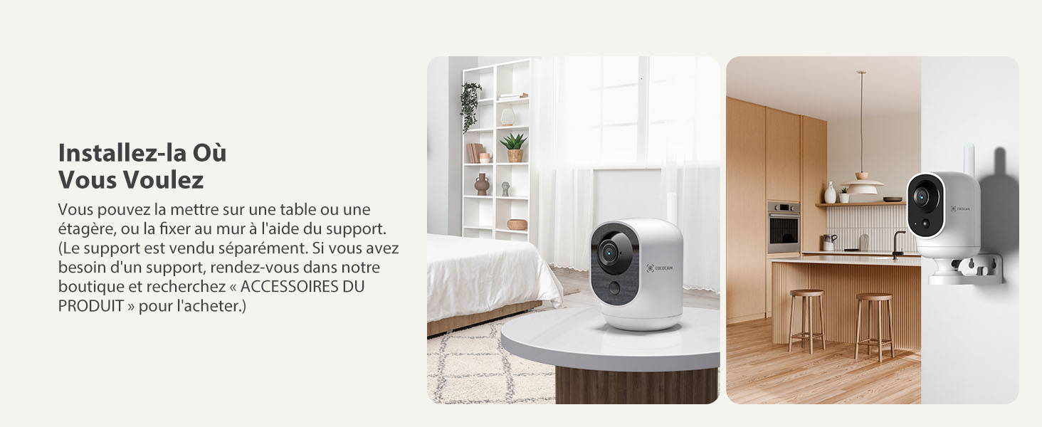 3.Si vous souhaitez fixer la caméra au mur,vous pouvez acheter un support dans notre boutique