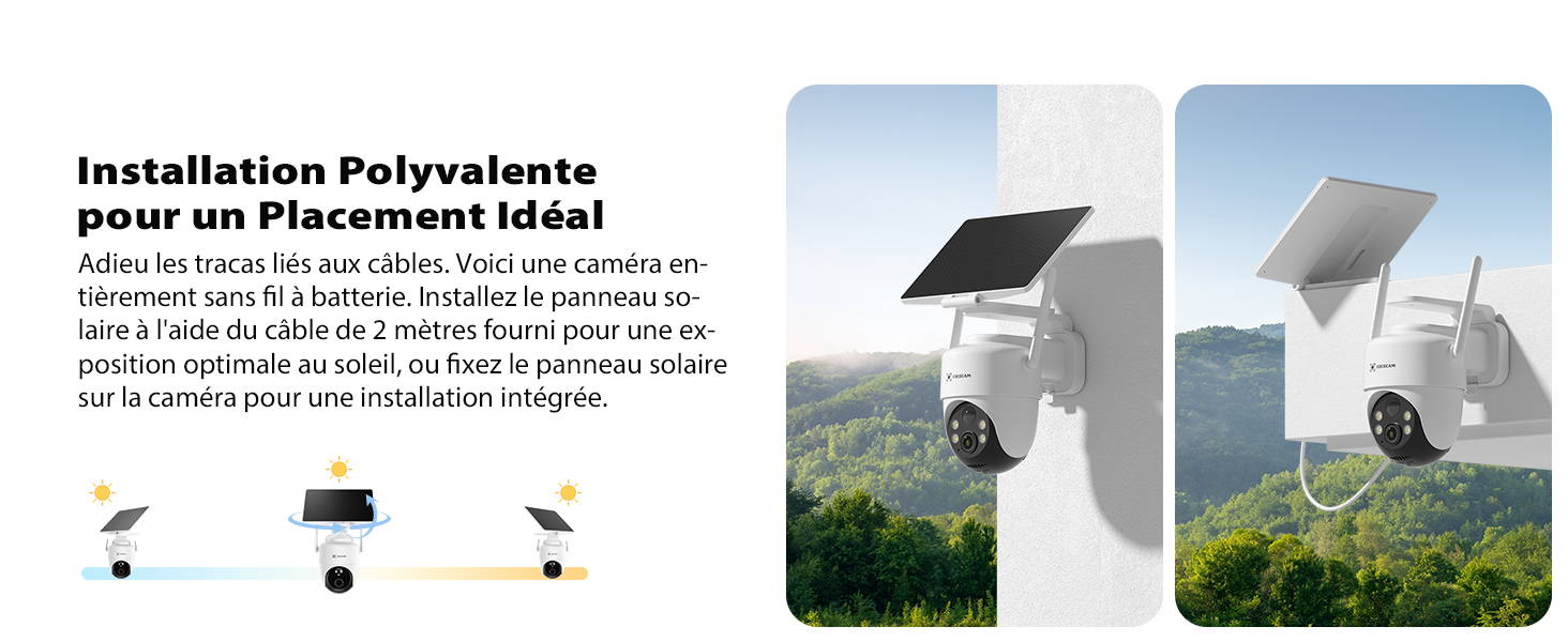 équipée d'une batterie rechargeable de 10 000 mAh et d'un panneau solaire ajustable de 5 W (câble de 2 m inclus), cette caméra sans fil extérieure 4K propose une tenue à long terme sans recharge fréquente, idéal pour les installations sans fil.