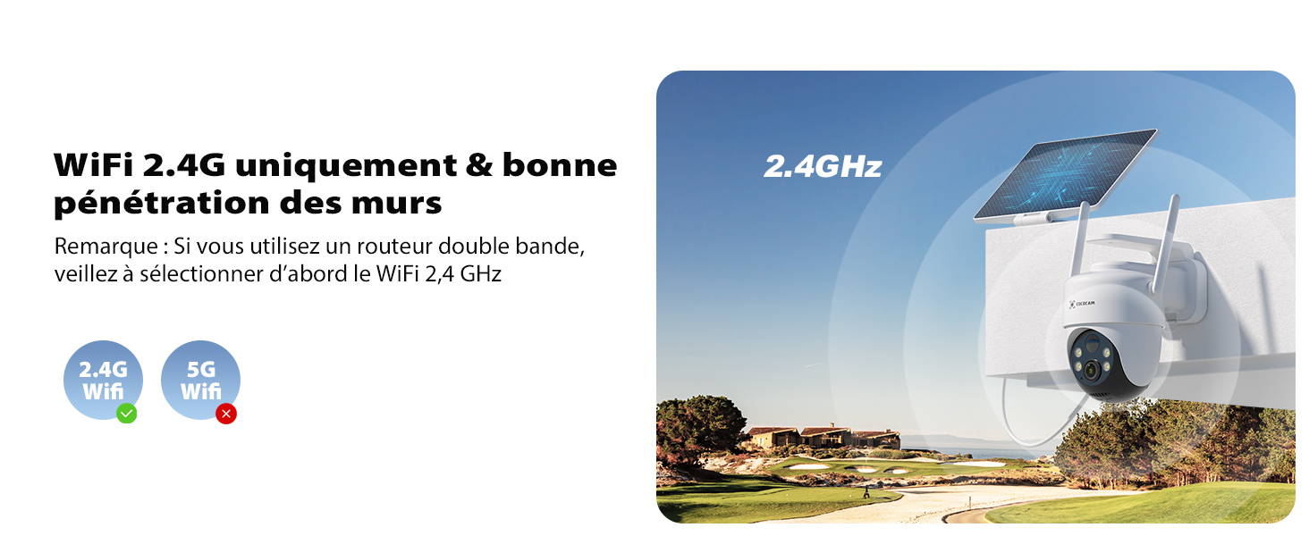 Prise en charge du Wi-Fi 2,4 GHz uniquement, pas du Wi-Fi 5 GHz.
